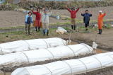 苗床の水平出し 田んぼに苗床と水路などをつくる。信濃培養土を撒く。 木酢液の散布。 種子を蒔く(大苗にするため種子同士がくっつかないように蒔く。) 寒冷紗と保温マットで覆う。 |
