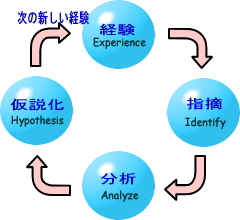 このように「経験」は「指摘」、「分析」、「仮説化」の流れで学習となります。